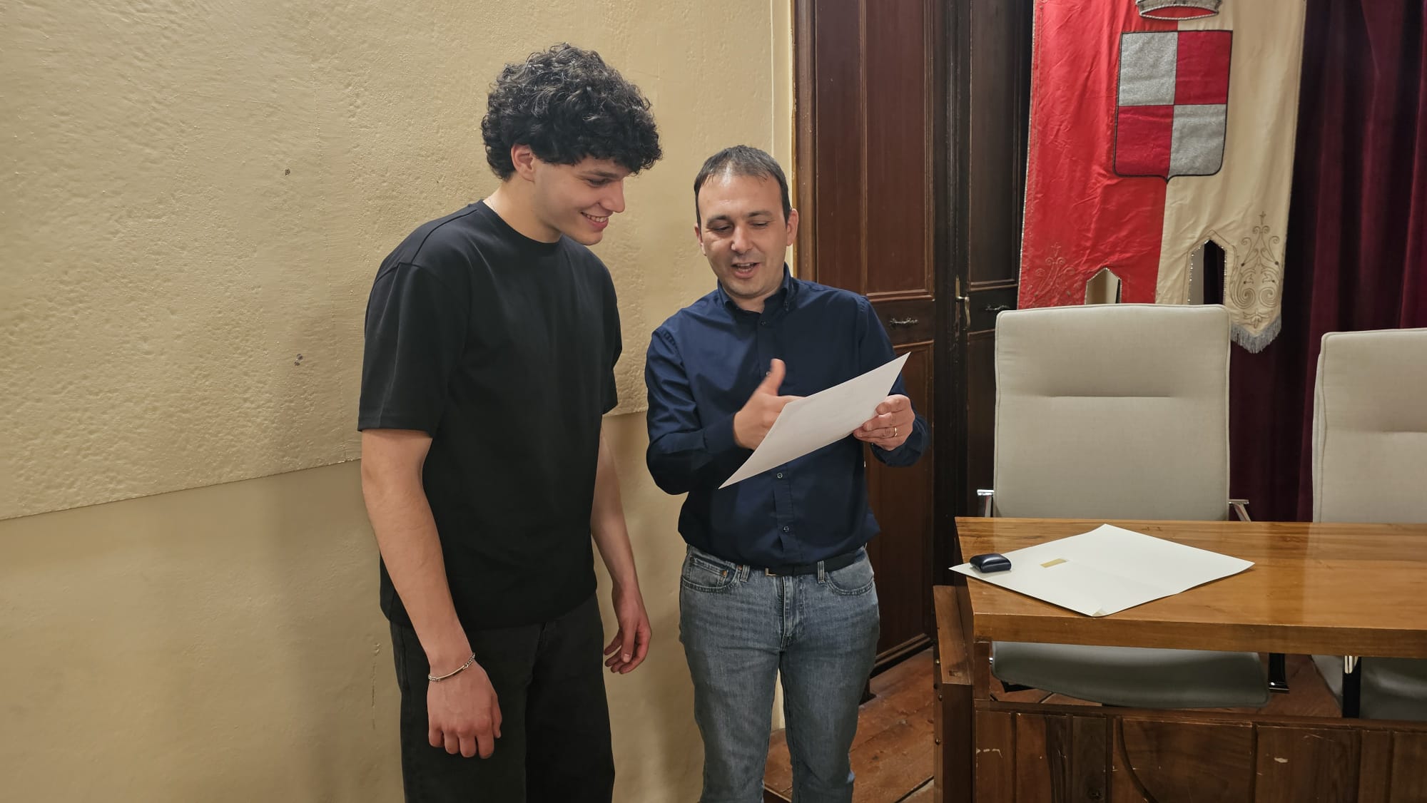 L’incontro si è concluso con la consegna di un riconoscimento simbolico da parte dell’amministrazione comunale, a testimonianza dell’affetto della cittadinanza nei confronti di Nicolò.
