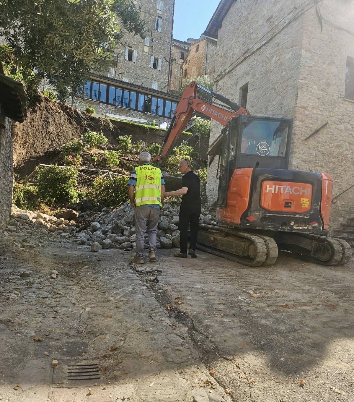 È crollato, venerdì mattina  ad Assisi, il muro di sostegno del terrazzo e giardino di una struttura ricettiva del centro storico, nella zona di via Nicolini. Il fatto è accaduto intorno alle ore 6.00, in una proprietà privata. Vigili del Fuoco, Polizia locale e tecnici comunali stanno mettendo in sicurezza l’area e svolgendo gli accertamenti necessari per verificare le cause del crollo, che è stato improvviso e fortunatamente senza alcun danno a persone. Alcune auto parcheggiate in prossimità, sono state colpite da detriti. Subito sul posto anche il sindaco di Assisi, Valter Stoppini, per verificare personalmente la situazione. Nelle prossime ore verrà emessa un’ordinanza con le disposizioni del caso.