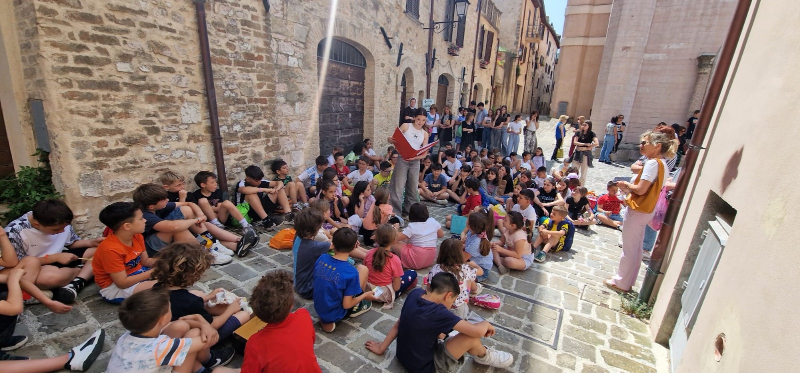 La chiusura dell’anno scolastico è sempre un momento speciale, e quest’anno gli studenti dell’Istituto Superiore “Sigismondi” e i bambini della Primaria di Nocera Umbra hanno deciso di renderlo ancora più memorabile, arriccchendolo con attività coinvolgenti e significative, il vivace e colorato swap party che da qualche anno organizzano sotto i suggestivi Portici di San Filippo, un tempo luogo di attività mercantili della città. La giornata ha visto così protagonisti giovani entusiasti, di diversi livelli scolastici, che hanno dimostrato come divertimento, cultura e rispetto per l’ambiente possano andare di pari passo. Lo swap party è uno dei momenti più attesi, in particolar modo dai più piccoli, che sui tavoli, gentilmente concessi dalla Taverna Borgo San Martino scambiano vestiti, libri e oggetti usati, e tutti insieme per dare una nuova vita a capi e materiali. È stato bello vedere come questa attività abbia unito generazioni diverse, sensibilizzando tutti sull’importanza di uno stile di vita più green e un consumo più consapevole e responsabile. L’iniziativa si inserisce all’interno del curricolo di Educazione civica e offre l’opportunità concreta per vivere temi come la cittadinanza attiva, il rispetto dell’ambiente e la solidarietà, un’occasione per mettere in pratica i valori appresi in classe e partecipare a attività che promuovono il senso di comunità e la responsabilità. All’ingresso dei Portici, l’attenzione è stata richiamata dalla magnifica “Venere degli stracci”, ricostruita dalle studentesse del Liceo delle Scienze Umane accanto alla quale campeggiavano degli slogan green che potevano essere votati attraverso un QR. I liceali hanno poi dato sfogo alla loro creatività attraverso la rappresentazione di alcuni dipinti di Caravaggio. Con grande impegno e passione hanno interpretato alcune delle opere più famose del maestro del Barocco, come la Vocazione di San Matteo, I bari e la Madonna dei pellegrini, portando in scena emozioni e storie che ancora oggi affascinano. L’evento è stato accompagnato da coinvolgente reading, durante il quale gli studenti delle Scienze Umane hanno condotto letture animate di favole, catturando l’attenzione dei più piccoli e creando un momento di scambio e di crescita condivisa. La lettura salverà il mondo! Sono queste le attività che rafforzano l’amore per la cultura e dimostrano che anche le parole sono strumenti potenti per promuovere valori positivi. Un appuntamento che ha ben saputo coniugare arte, storia e cittadinanza attiva, mostrando come la cultura possa essere un veicolo di consapevolezza e di impegno sociale. “Quella che si organizza ai Portici San Filippo -sostiene il Dirigente scolastico, prof. Leano Garofoletti- è molto più di una semplice festa per i nostri allievi, perché diventa l’occasione per riflettere sull’importanza di valori come la sostenibilità, l’economia circolare e la cittadinanza attiva, coinvolgendo studenti di tutte le età in attività non solo divertenti, ma formative. Un modo bellissimo per salutare l’anno scolastico e guardare al futuro con entusiasmo e responsabilità”.