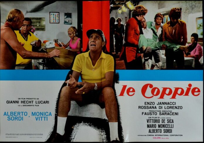Mercoledì 25 giugno alle ore 21.00 presso la Rocca Flea di Gualdo Tadino si terrà la proiezione gratuita del film Le coppie (1970), nell’ambito della rassegna cinematografica “Lù Mière – Calici di Cinema”, promossa dal Comune di Gualdo Tadino.