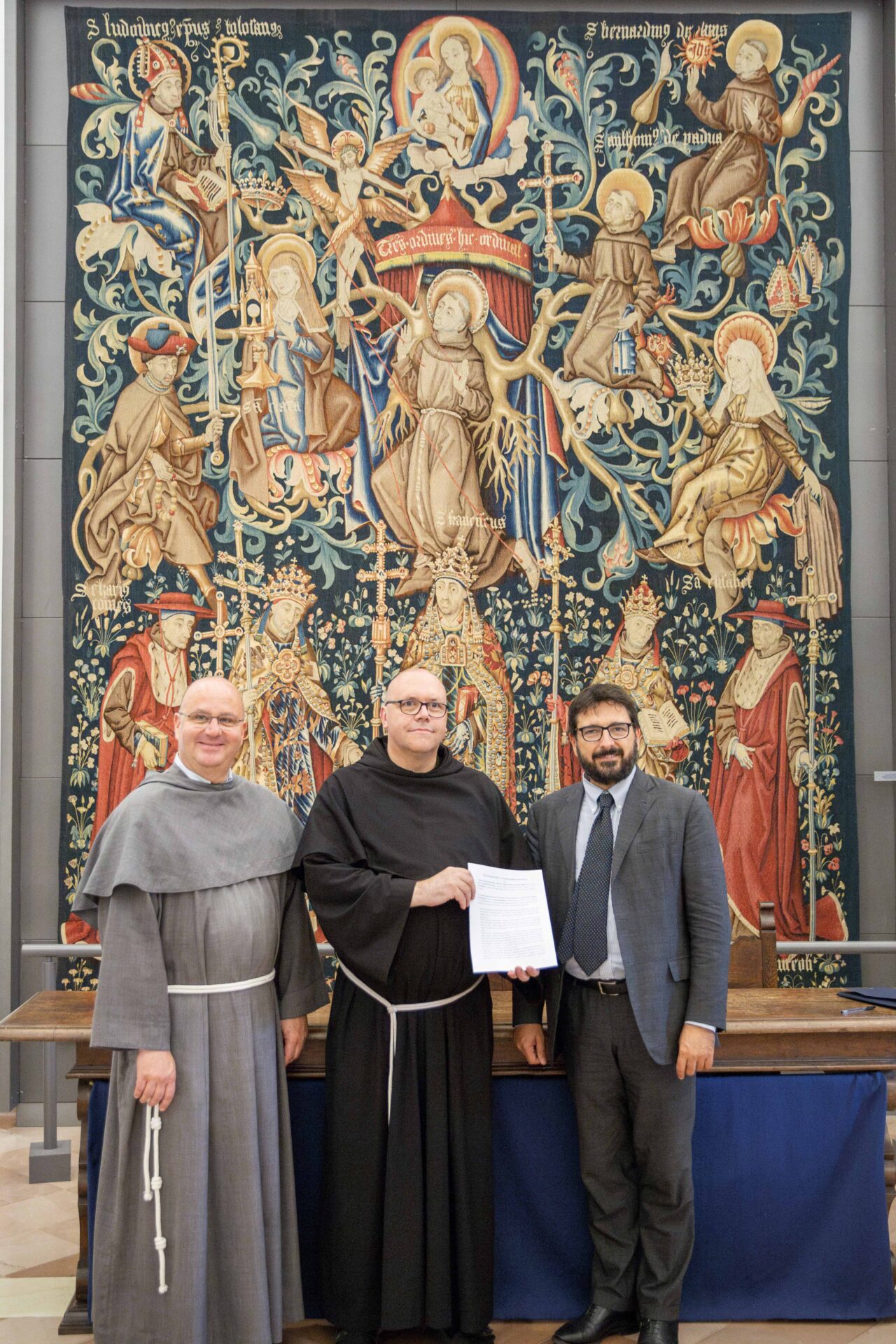 Mercoledì 2 luglio 2025, presso la sede della Custodia generale del Sacro Convento di Assisi, è stato firmato dal direttore dei Musei nazionali di Perugia – Direzione regionale Musei nazionali dell’Umbria, Costantino D’Orazio, dal legale rappresentate della Custodia e dal Custode del Sacro Convento di San Francesco in Assisi dei Frati Minori Conventuali, rispettivamente fra Mario Cisotto, OFMConv, e fra Marco Giuseppe Moroni, OFMConv, il rinnovo della convenzione per la valorizzazione congiunta del Museo del Tesorodella Basilica di San Francesco in Assisi.