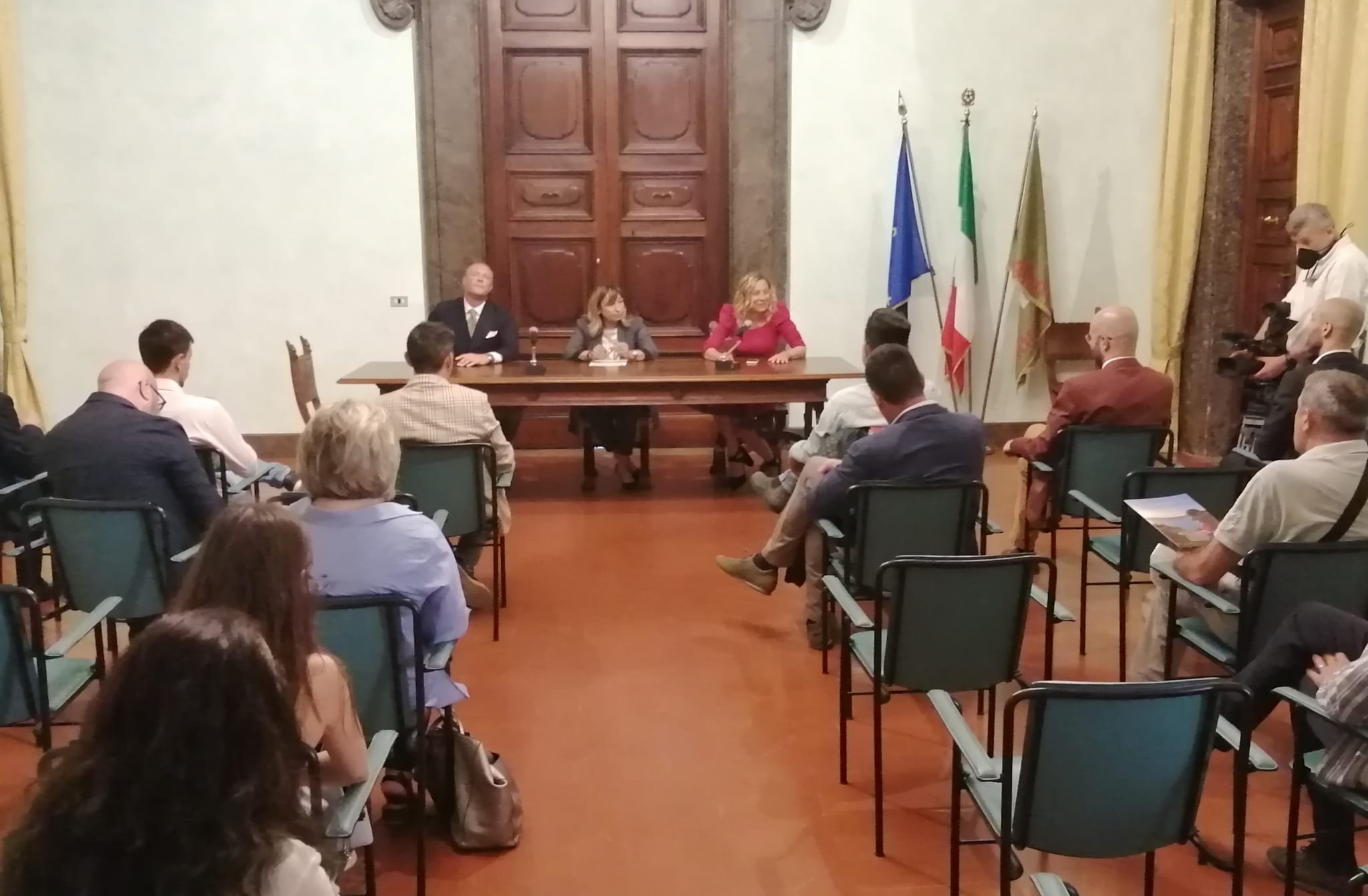 nel corso della conferenza stampa che si è tenuta nel Salone d’Onore di Palazzo Donini. Sono