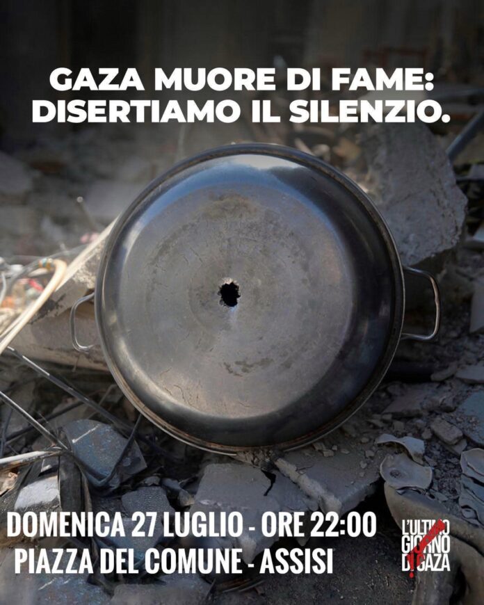l’iniziativa “Ultimo giorno di Gaza”, alla quale la città di Assisi ha aderito per unirsi idealmente a quanti lottano per sopravvivere e dire basta al conflitto in Terra Santa. L’appuntamento è in Piazza del Comune, poco prima delle 22.00, per due minuti di
