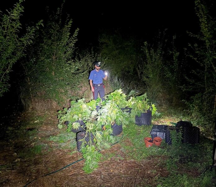 marijuana, di cui una già in fase di essiccazione, dalle quali si sarebbero potute ricavare circa 300 dosi, unitamente a barattoli di fertilizzante e ad un impianto di irrigazione che arrivava fino alla “piantagione”, oltre