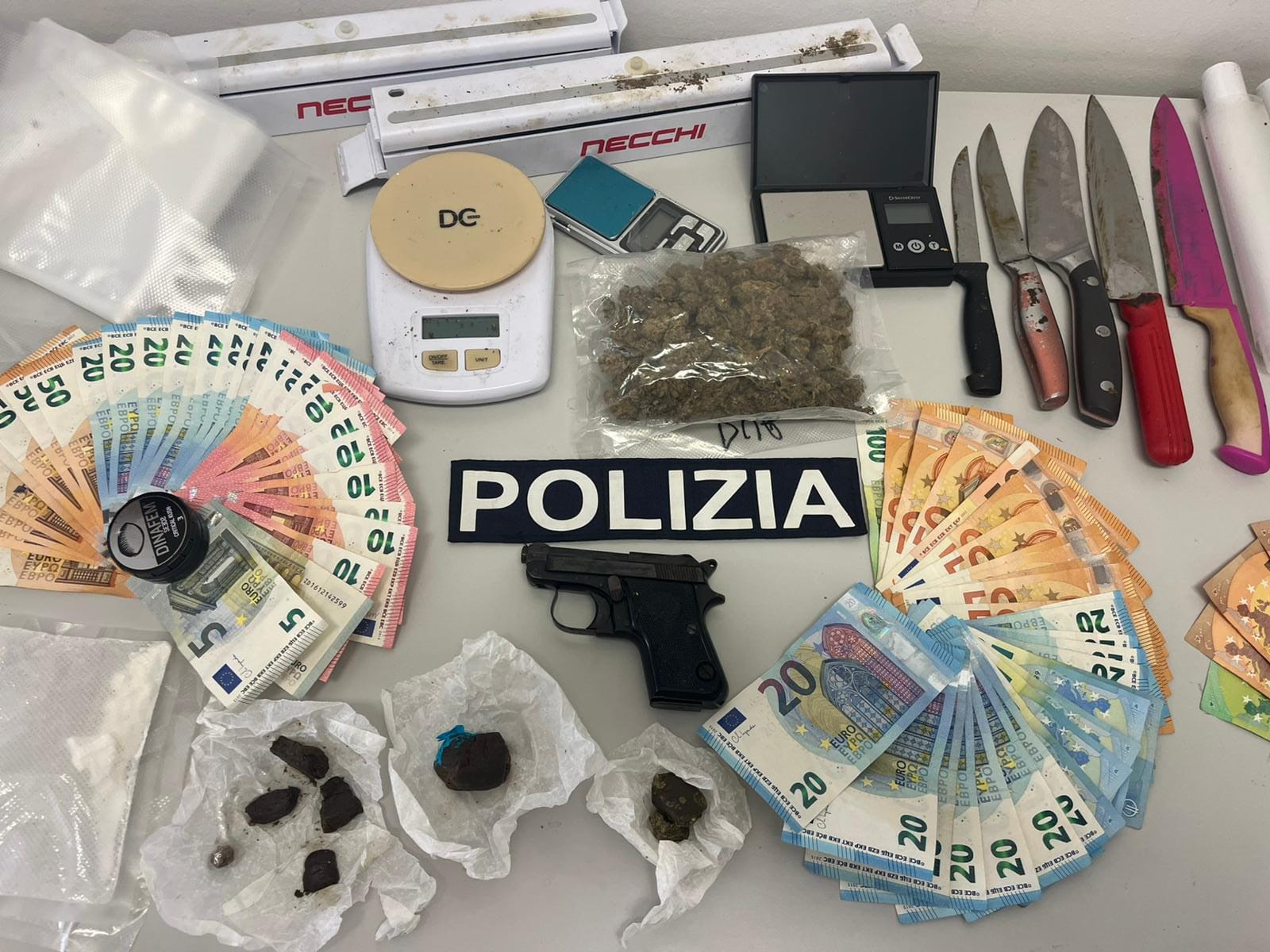 Nell’appartamento sono stati rinvenuti anche un bilancino di precisione ed una copiosa quantità di materiale utile al confezionamento delle singole dosi di stupefacente, oltre ad una somma di quasi 2.300 euro in contanti, ragionevolmente costituente provento dell’illecita attività di spaccio.