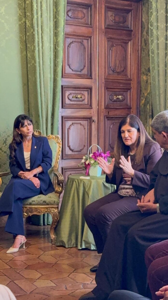 La delegazione palestinese era composta, oltre che dalla ministra e dall’ambasciatrice designata, anche da Adel Atieh, direttore del dipartimento per gli Affari europei del ministero degli Affari esteri e degli espatriati dello Stato di Palestina, Ameed Abdalrahim, secondo segretario – Ufficio del ministro degli Affari esteri e degli espatriati dello Stato di Palestina, Issam Qadri, secondo segretario – Ambasciata di Palestina in Italia.