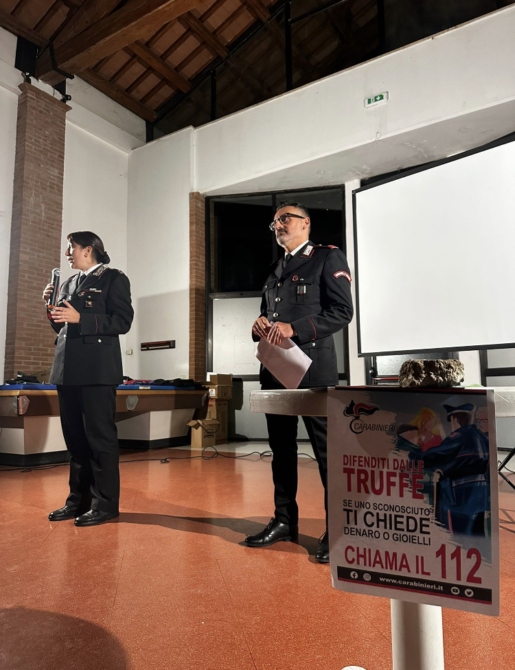 Il 28 agosto, alle ore 21:00, presso il Centro di Vita Associativa (CVA) di Montelaguardia, ha avuto luogo un incontro pubblico dal titolo “Difenditi dalle truffe e dai furti”, promosso all’Associazione Ricreativa APs di Montelaguardia e tenuto dal Comandante della Compagnia Carabinieri di Perugia, il Maggiore Roberta Cozzolino, insieme alla quale vi era il Comandante della Stazione di Perugia-Fortebraccio, Maresciallo Maggiore Giuseppe Pontemezzo.