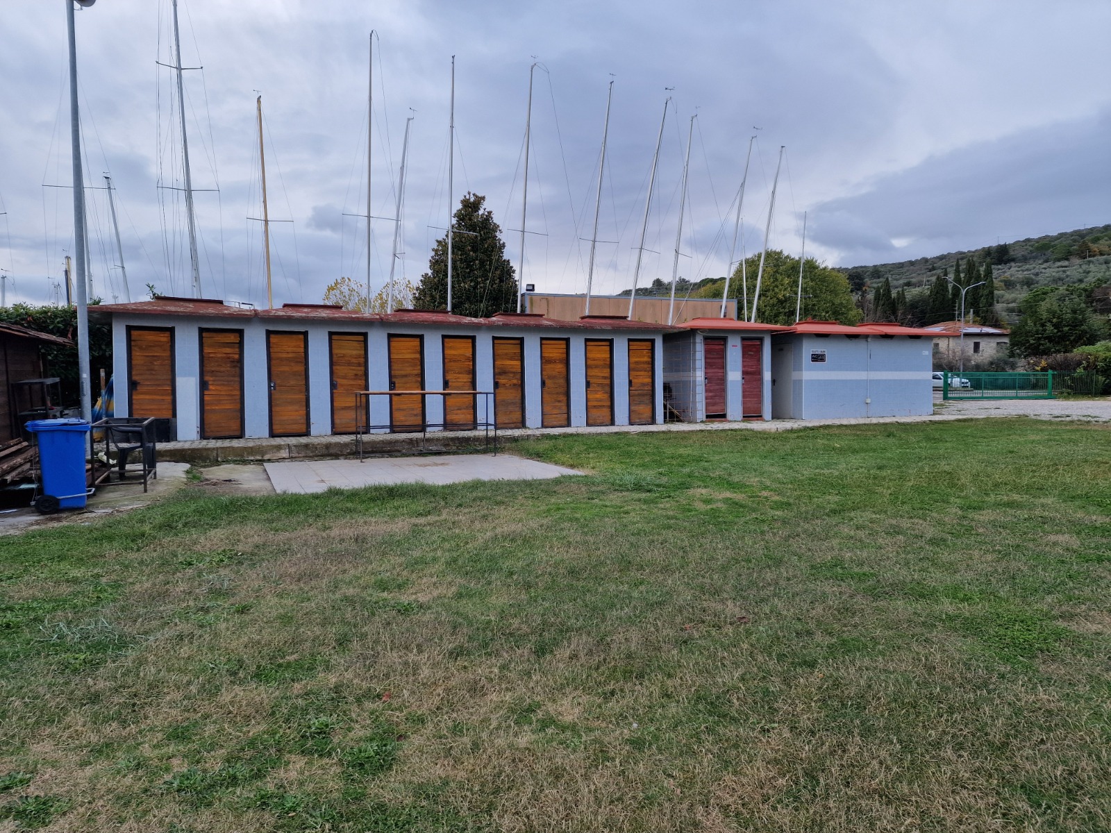 Il bene è composto da un manufatto principale destinato a servizio bar e ristorazione, una veranda in struttura verticale metallica e orizzontale in legno, un gazebo su platea armata in calcestruzzo pavimentata, un pergolato in legno, cabine in muratura, due magazzini in legno adibiti a rimessa attrezzi e una piscina con solarium pavimentato.