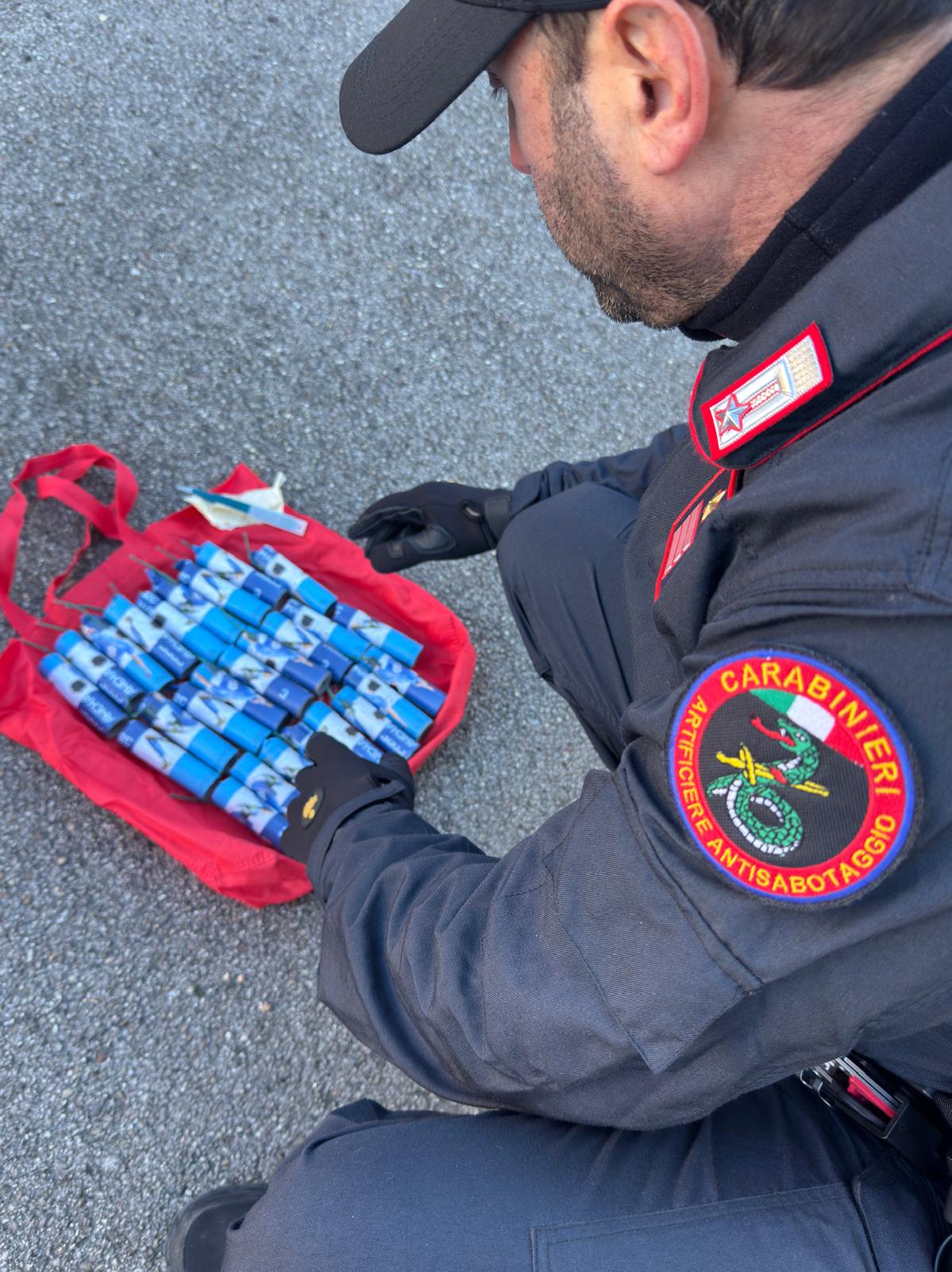 La scoperta più sorprendente è però avvenuta nel corso della perquisizione eseguita presso il suo domicilio, laddove i Carabinieri, in un garage di pertinenza, hanno rinvenuto 26 mini candelotti esplodenti artigianali, detenuti illegalmente e presumibilmente destinati alla vendita in occasione delle prossime festività di fine anno.