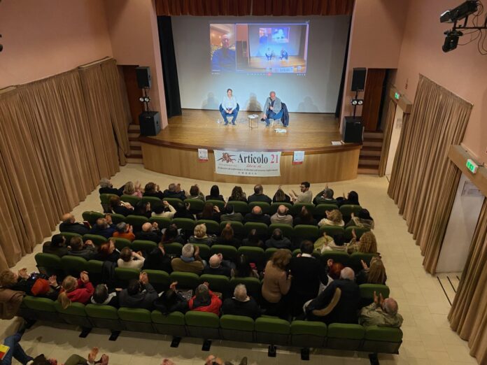 A conclusione della serata, Oriano Anastasi, coordinatore regionale di Articolo 21, ha consegnato a Ranucci una targa dell’Associazione come segno di riconoscimento per il suo impegno nella difesa del diritto all’informazione.