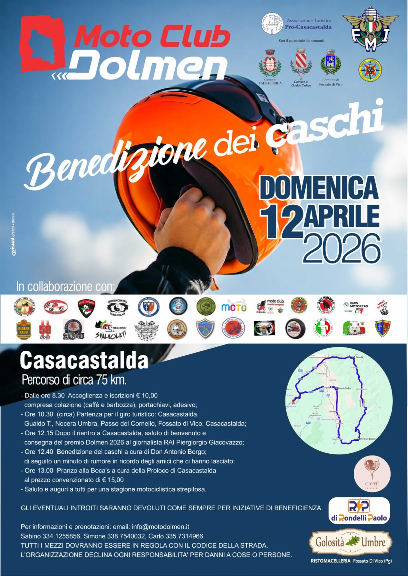 Da oltre vent’anni, infatti, Casacastalda accoglie con entusiasmo i centauri che transitano durante tutto l’anno per rendere omaggio al Dolmen a loro dedicato, simbolo di questo legame speciale tra il territorio e il mondo motociclistico. La Benedizione dei Caschi rappresenta il momento più significativo di questo rapporto, un’occasione per ritrovarsi, condividere la passione per la strada e vivere insieme una giornata all’insegna dell’amicizia.