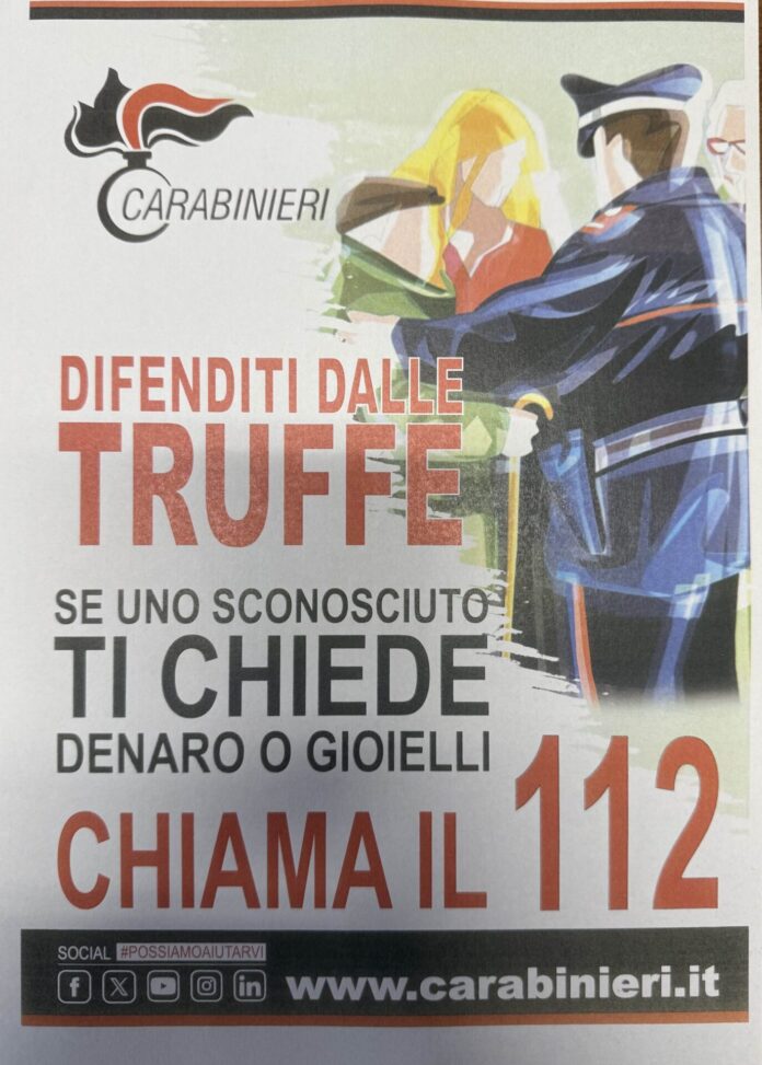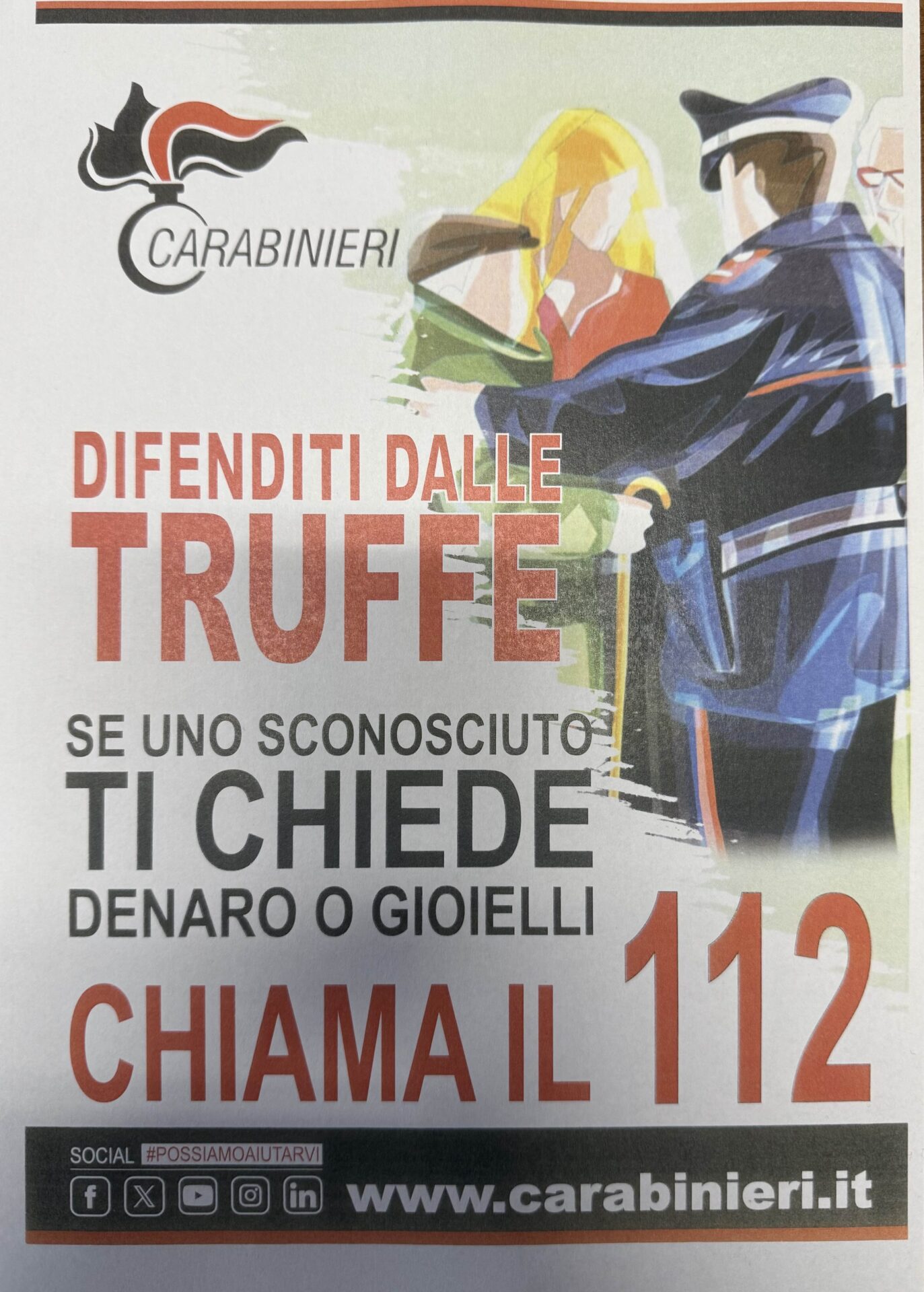 Nel corso degli incontri è stata infine rivolta l’attenzione su un fenomeno purtroppo sempre più diffuso, quello cioè delle truffe ai danni degli anziani, invitando gli studenti a farsi parte attiva nella sensibilizzazione delle proprie famiglie. A tal fine sono stati distribuiti volantini informativi, affinché i ragazzi potessero diventare veicolo di prevenzione e consapevolezza all’interno delle loro comunità.